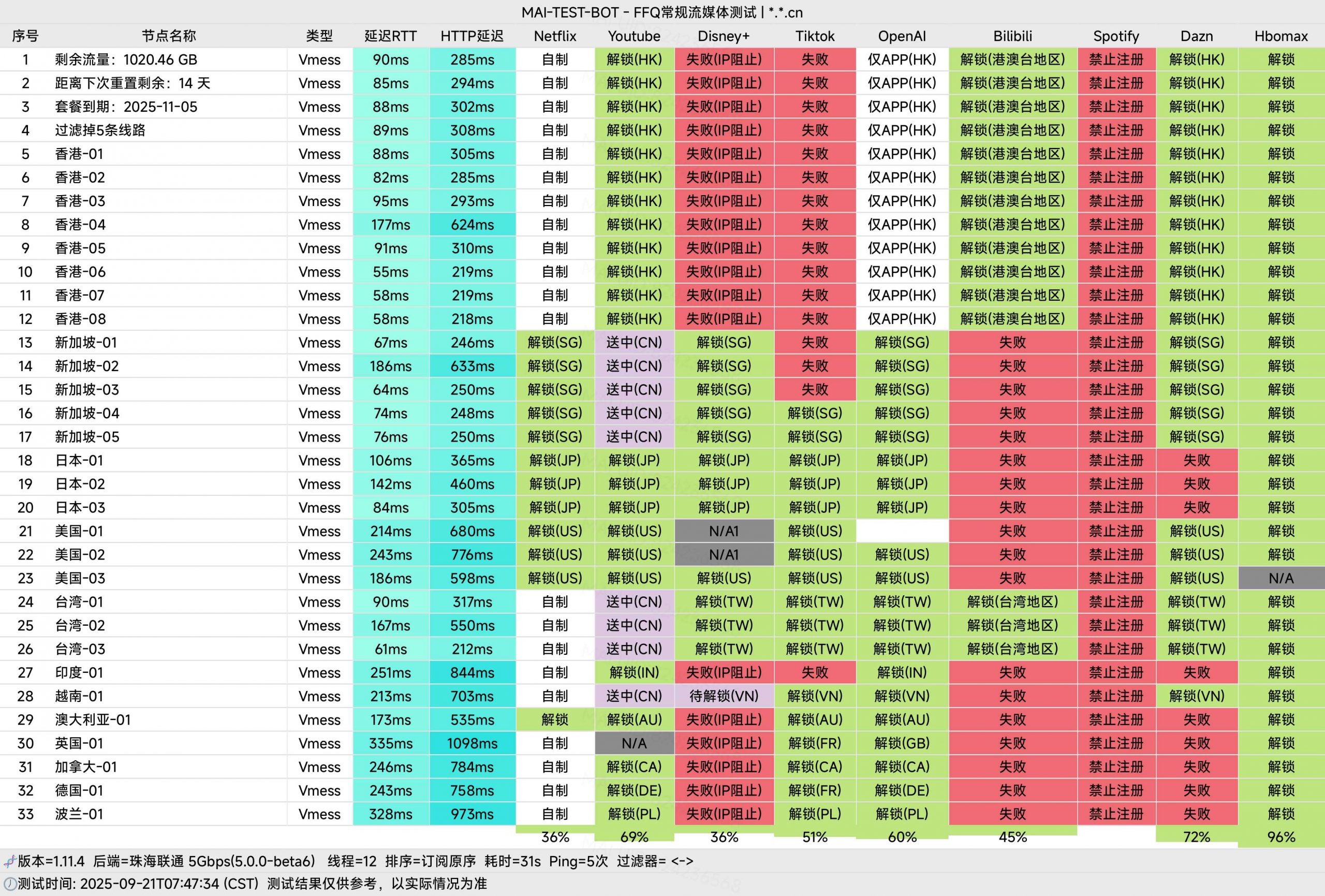 国内中转节点:广州移动、海口移动、绵阳移动、泉州电信