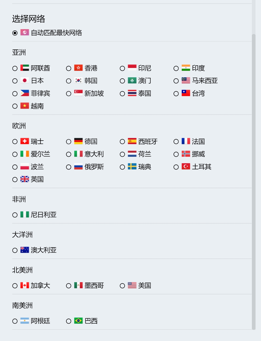 落地节点地区:阿联酋、香港、印尼、印度、日本、韩国、澳门、马来西亚、菲律宾、新加坡、泰国、台湾、越南、瑞士、德国、西班牙、法国、爱尔兰、意大利、荷兰、挪威、波兰、俄罗斯、瑞典、土耳其、英国、尼日利亚、澳大利亚、加拿大、墨西哥、美国、阿根廷、巴西