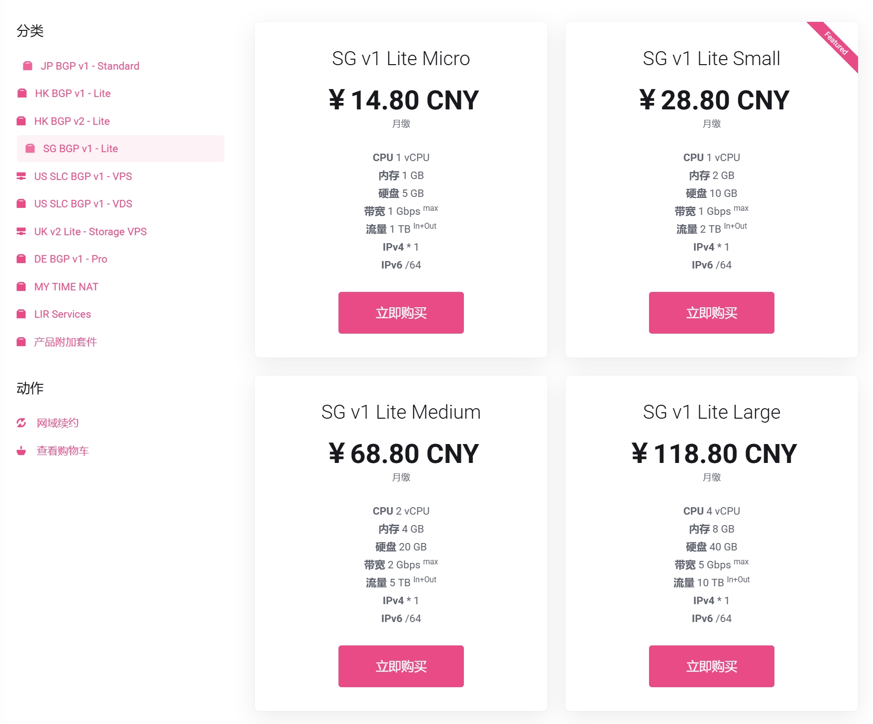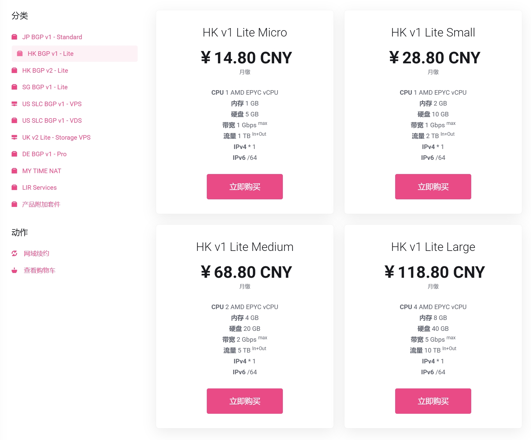 荔枝云Lycheen,接驳 10Gbps 万兆超大带宽,移动优化(无线路保证,大部分地区去程CMIN2,回程Lumen),有Softbank 及Lumen 接入。提供多地区 DNS 解锁,可订购附加IP(10元/个),可随时订购流量包。并且有大盘鸡存储服务器。