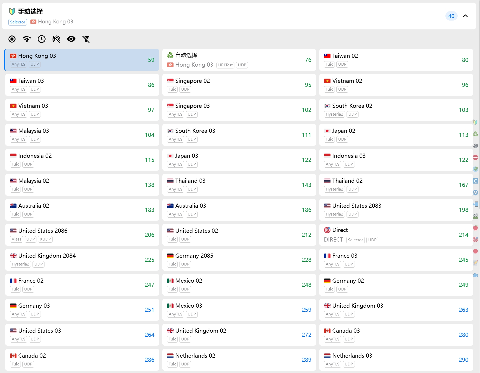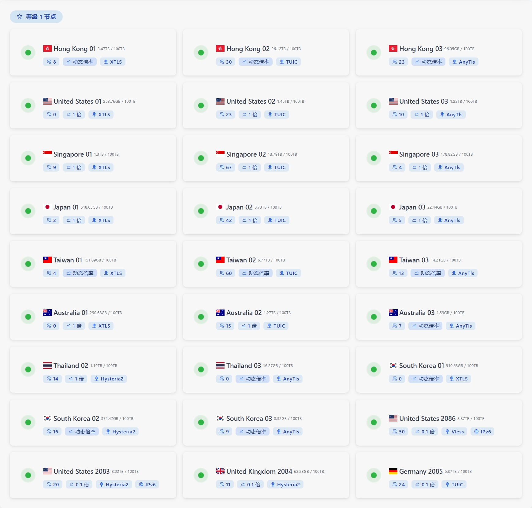 落地节点地区:香港、新加坡、台湾、泰国、日本、美国、澳大利亚、德国、韩国、越南、墨西哥、澳大利亚、加拿大、法国、荷兰、印尼、马来西亚
