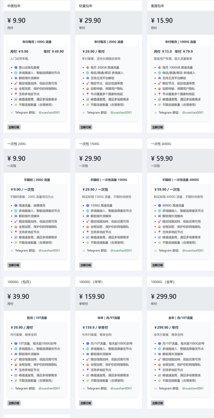 一家开了有小半年的直连机场,采用了优化出海线路的节点,延时低,有家宽线路,任意套餐均赠送临境EMBY,节点数持续增加中。