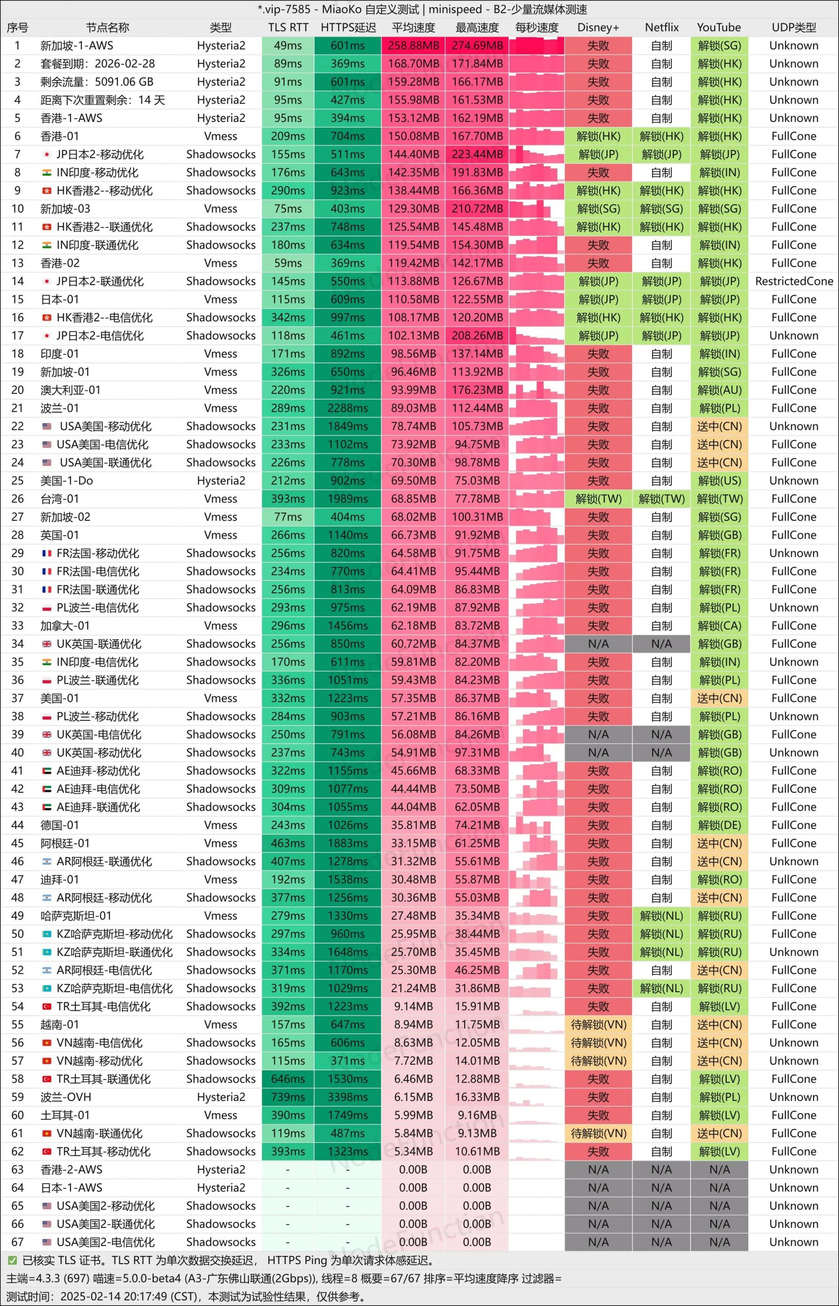 国内中转节点:广州移动、海口移动、绵阳移动、泉州电信